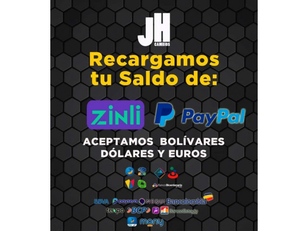 +584124651653 Recarga con nosotros tu Billetera Zinli PayPal Wally y Mony. De manera inmediata y segura. Paga en Bolívares. https://www.instagram.com/p/CmWf_vori2l/?igshid=ZWIzMWE5ZmU3Zg==
